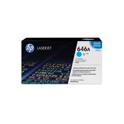 HP 646A Cyan Standard Capacity Toner 12.5K pages for HP Color LaserJet Enterprise CM4540 - CF031A
