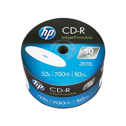 This pack of HP CDs are perfect for burning music or simply storing data. They are CD-R format and have 52x write speed, with a storage capacity of 700mb- or 80 minutes of audio data. Additionally, these discs can be used in conjunction with a compatible inkjet printer to easily label your discs. These non-rewritable CDs are exceptional quality and supplied in a pack of 50 discs.