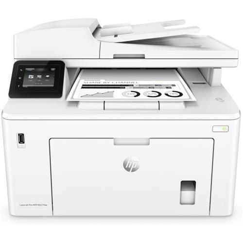 HP LaserJet Pro M227fdw. Print technology: Laser, Printing: Mono printing. Maximum resolution: 1200 x 1200 DPI. Copying: Mono copying. Maximum copy resolution: 600 x 600 DPI. Scanning: Colour scanning, Faxing: Mono faxing, Duplex functions: Print. Maximum ISO A-series paper size: A4. Standard input capacity: 250 sheets, Standard output capacity: 150 sheets. Wi-Fi. Product colour: White
