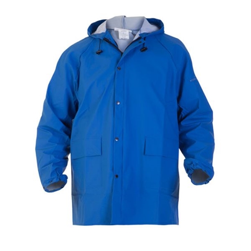 The Hydrowear Selsey Hydrosoft Waterproof Jacket has a zip up front with storm flap and press stud closure. Featuring fixed hood, underarm ventilation, elasticated cuffs with press studs, 2 front pockets with flap. The jacket has a length of 85cm offering extensive cover. Lightweight and durable. 170 gsm PU coated Polyester fabric. Multi use garment for agriculture. industrial and leisure. Conforms to EN343 Class 3 Water Penetration. Conforms to EN343 Class 1 Breathability.