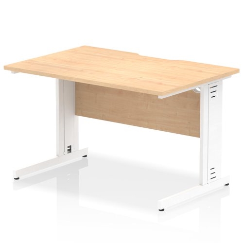 Impulse 1200 x 800mm Scalloped Edge Straight Office Desk Maple Top White Cable Managed Leg