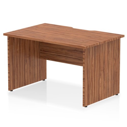 Impulse 1200 x 800mm Scalloped Edge Straight Office Desk Walnut Top Panel End Leg