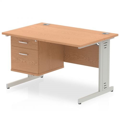 Impulse 1200 x 800mm Straight Office Desk Oak Top Silver Cable Managed Leg Workstation 1 x 2 Drawer Fixed Pedestal