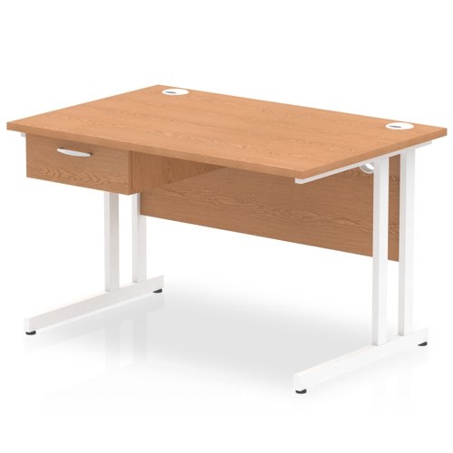 Impulse 1200 x 800mm Straight Office Desk Oak Top White Cantilever Leg Workstation 1 x 1 Drawer Fixed Pedestal