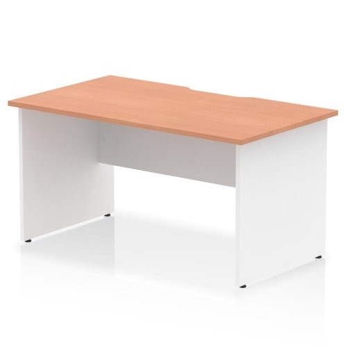 Impulse 1400 x 800mm Scalloped Edge Straight Office Desk Beech Top White Panel End Leg
