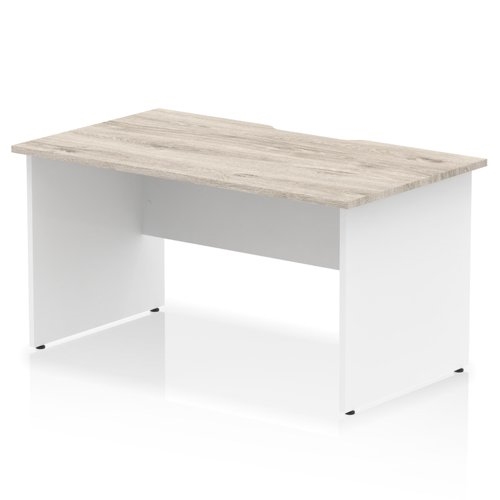Impulse 1400 x 800mm Scalloped Edge Straight Office Desk Grey Oak Top White Panel End Leg