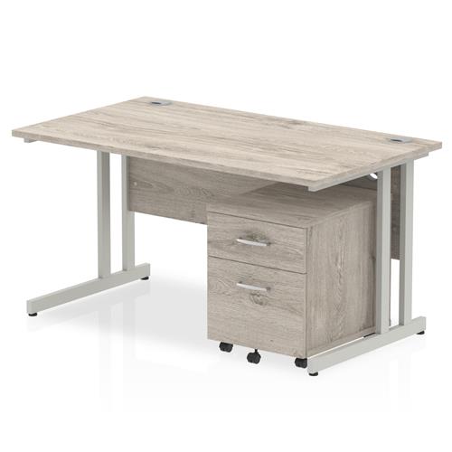 Impulse 1400 x 800mm Straight Office Desk Grey Oak Top White Cantilever Leg Workstation 2 Drawer Mobile Pedestal