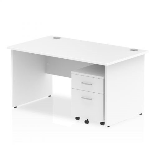 Impulse 1400 x 800mm Straight Office Desk White Top Panel End Leg Workstation 2 Drawer Mobile Pedestal