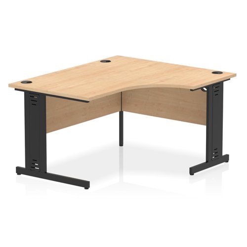 Impulse 1400mm Right Crescent Office Desk Maple Top Black Cable Managed Leg