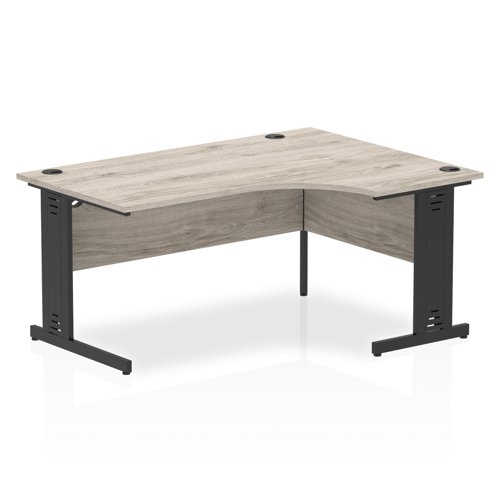 Impulse 1600mm Right Crescent Office Desk Grey Oak Top Black Cable Managed Leg