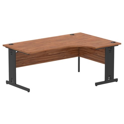 Impulse 1800mm Right Crescent Office Desk Walnut Top Black Cable Managed Leg