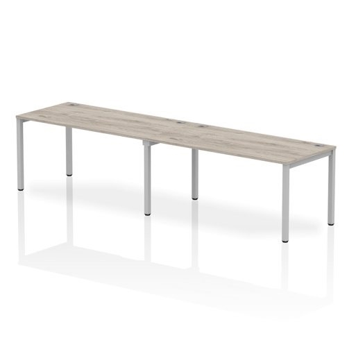 Impulse Bench Single Row 2 Person 1600 Silver Frame Office Bench Desk Grey Oak