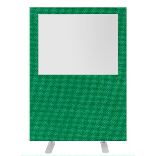 Impulse Plus Clear Half Vision 1500/1200 Floor Free Standing Screen Palm Green Fabric Light Grey Edges
