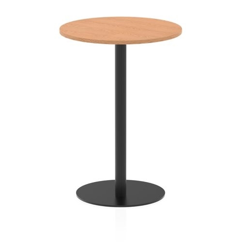 Italia 800mm Poseur Round Table Oak Top 1145mm High Black Leg