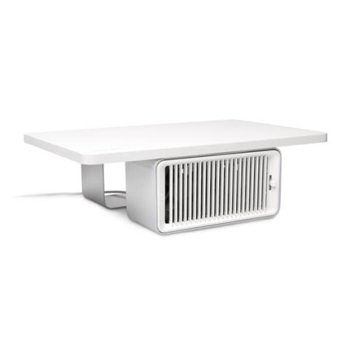 The Kensington CoolView Wellness Monitor Stand with Desk Fan combines the ergonomic benefits of raising your monitor height with the wellness benefits of circulating airflow. The steel base elevates your monitor to an optimal viewing height to promote a healthy posture and increase productivity. The integrated desk fan provides quiet and gentle airflow for a more comfortable workspace. The sleek 2-in-1 patent-pending design offers users an organized working environment within a small desktop footprint. An ideal monitor riser for modern offices focused on employee wellness. Supports iMac and external monitors up to 27â€.