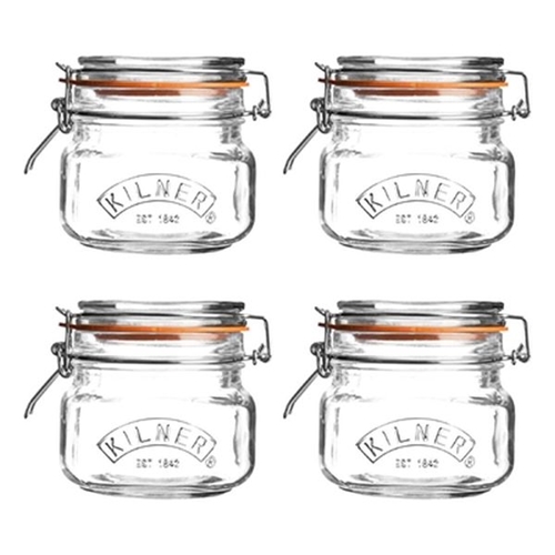 Kilner Square Clip Top Jar 0.5Ltr (4 Pack)
