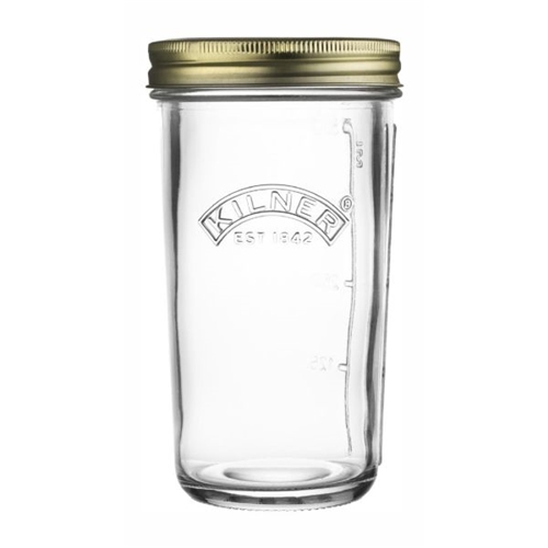The jar has embossed ML volume indicators on the side and enhanced with the authentic Kilner embossed logo on the front.