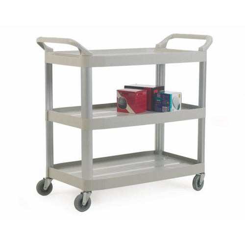 Large Shelf Trolley; 3 Tier; Swivel Castors; Aluminium/Plastic; 120kg; Grey/Silver