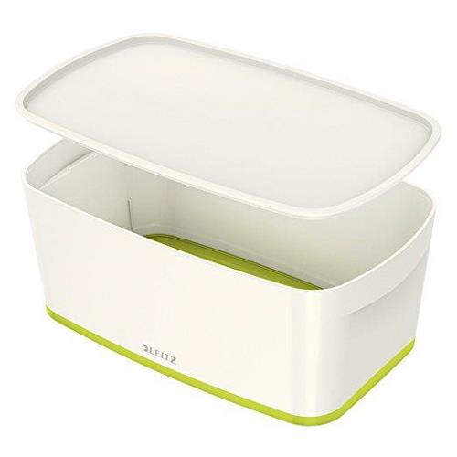 Leitz MyBox Storage Box Small with Lid Plastic W318xD191xH128mm White/Green Ref 52294063