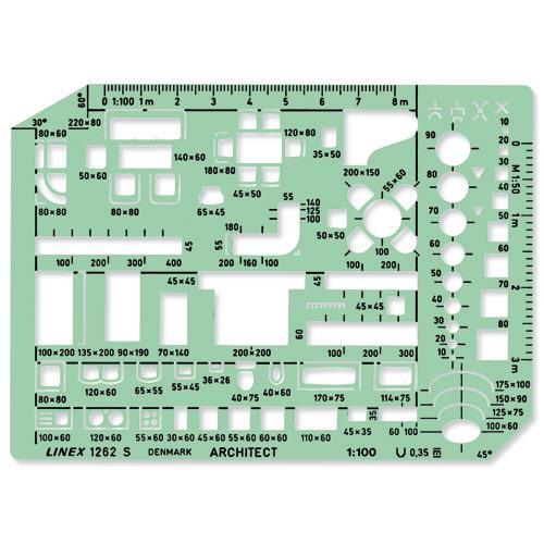 Linex Furniture Template with Furniture and Room Symbols Scale 1-50 230x160mm Tinted Green Ref LXG1263S