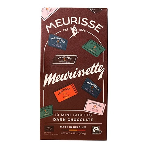 A mix pack of 10 mini tablets of dark chocolate, organic and fairtrade