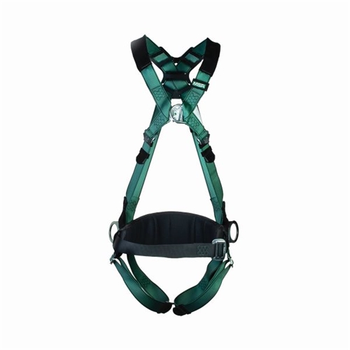 MSA V-Form Full Body Back Chest Hip D-Ring Qwik-Fit Safety Harness with Waistbelt Grn XS MSA10206048