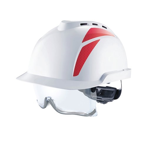 MSA V-Gard 930 Vented Helmet White W & Integrated Spec Red Sticker