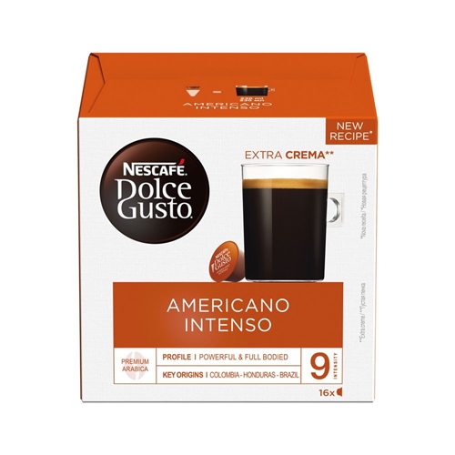 Nescafe Dolce Gusto uses fifteen bar pump pressure to create barista-quality drinks at the touch of a button. Using a pod system of individual servings in foil-sealed capsules to lock in freshness, making your favourite drink could not be simpler. These Americano Intenso capsules create a bold and full-bodied coffee made from ground Arabica beans. Simply insert the capsule into your machine and enjoy the great taste in a matter of seconds. The coffee is supplied in 3 three boxes, each box contains 16 capsules.