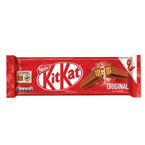 Nestle have spent years perfecting their recipe for Nestl two-finger KitKat, these fingers of slender wafer are sandwiched together with chocolate cream and coated with a layer of smooth milk chocolate. Light yet luxurious, it combines crunch and softness in a yummy 104 calorie treat. With no artificial colours, flavours or preservatives this is the perfect solution for that mid-afternoon dip.