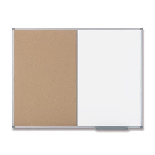 - Combination board featuring a magnetic drywipe surface and a natural cork noticeboard