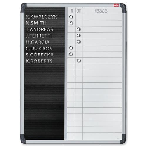 Nobo Welcome In-Out Board Drywipe Message Magnetic Aluminium Frame 20-Name W460xH960mm Black Ref 1901964