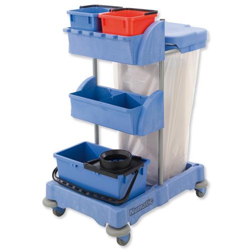 Numatic Xtra-Compact XC-1 Cleaning Trolley with 3 Buckets and 2 Tray Units