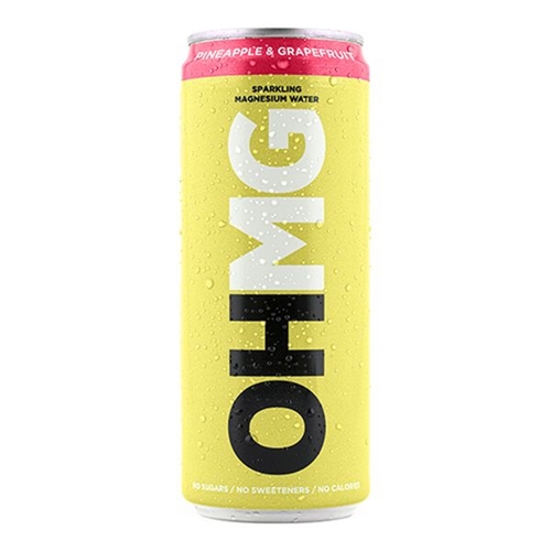 Introducing OHMG Pineapple and Grapefruit + Vitamin D Sparkling Magnesium water! This refreshing beverage combines the tropical sweetness of pineapple with the tangy zest of grapefruit, infused with 60mg of magnesium - equivalent to the magnesium found in one avocado. Each can also provides 60IU of vegan Vitamin D from Vita Algae, meeting 15% of your daily recommended intake. Known as the relaxation mineral, magnesium helps promote calm and well-being. It's summer in a can!