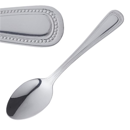 High polish finish 18/0 stainless steel with an attractive beaded border.