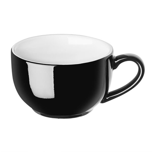 Perfect for serving medium-sized frothy coffees, these cappuccino cups Olympia's Café range are incredibly long lasting. Featuring rolled, chip-resistant edges they are ideal for environments where they will be used and put in the dishwasher constantly. The sleek black colour and white interior will add a chic touch to any business and bring a contemporary style. Supplied in a pack of 12, these stoneware cups are microwave safe and easy to clean.