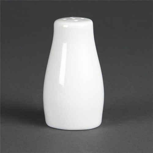 Great value pure white porcelain elegant pepper shakers by Olympia, ideal for all catering establishments. Sold separately from salt shakers, all are made with strengthened rolled edges for chip resistance and longevity.