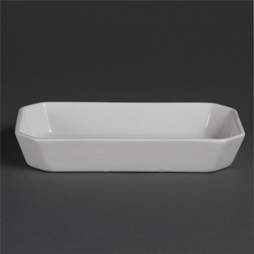 A welcome addition to any table, this rectangular hors d'oeuvre dish from Olympia is designed to provide a great value and hardwearing porcelain crockery solution for busy hotels, canteens and restaurants. Strengthened rolled edges ensure the rectangular dish is chip resistant and the fully vitrified body gives great glaze durability, making it ideal to withstand the rigours of the professional catering environment. The dish is stackable, helping maximise storage space, and oven, microwave, dishwasher and freezer proof.