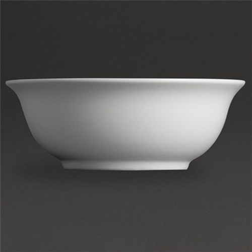 This pure white 9.25" salad bowl from Olympia is designed to provide a great value and hardwearing porcelain crockery solution for busy hotels, canteens, casual dining restaurants and cafes. Strengthened rolled edges ensure the salad bowl is chip resistant and the fully vitrified body gives great glaze durability, making it ideal to withstand the rigours of the professional catering environment. The bowl is stackable, helping maximise storage space, and oven, microwave, dishwasher and freezer proof.