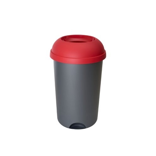Open Top Bin; 50L; Grey Body; Red Lid; Plastic
