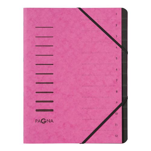 Pagna Pro Pressboard 12 Part Dividers File Elastic Straps A4 Dark Pink Ref 4005933