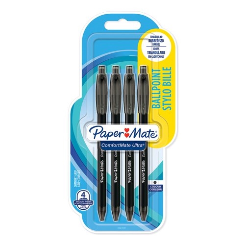 Enjoy a comfortable and effortless writing experience with the Paper Mate ComfortMate Ultra Retractable Ballpoint Pen. With its triangular barrel and full-length rubberised grip, this pen fits naturally in your hand and provides added comfort and control while you write.