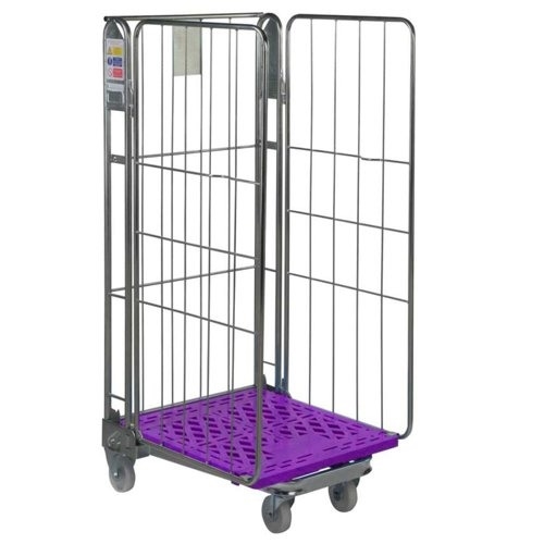 Plastic Base Nestable Roll Container; 3 Sided Unit; Internal Height mm: 1430; Silver/Purple Base