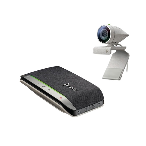 Crystal-clear audio and video in one easy to use and setup package. The Poly Studio P5 kit will kick your video calls into another gear. It starts with a Poly Studio P5 webcam with precision-tuned camera optics. Pair with a wireless smart speakerphone for incredible audio clarity. Automatic low-light compensation and brilliant colours make you look your best, without being left in the dark. The 1080p resolution with 4x digital zoom camera puts the focus on you, right where it belongs. Sound like the professional you are with Poly Sync 20 USB/Bluetooth smart speakerphone for remarkable audio anywhere. The Poly Sync 20 is Zoom certified and available in a Microsoft Teams certified version.