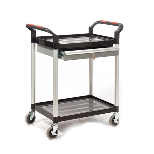 - 2 Shelf Trolley With a Lockable Steel Drawer