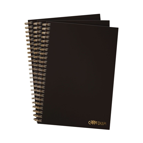 The Carpe Diem hardcover notebooks are the perfect way to brighten up your note taking. This black notebook includes 180 pages (80 sheets) of high quality, lined paper. The convenient B5 size has a sturdy hardcover with twin-wire binding that will easily slip into a bag when on the go. Supplied in a pack of 3.