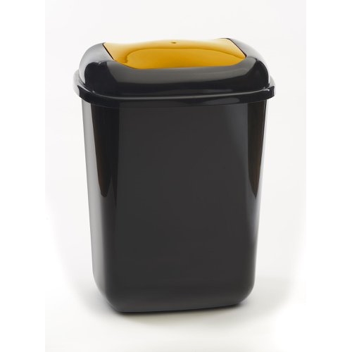 Push Spring Lid Bin c/w Sticker; 28L; Dark Grey Body; Orange Lid; Plastic