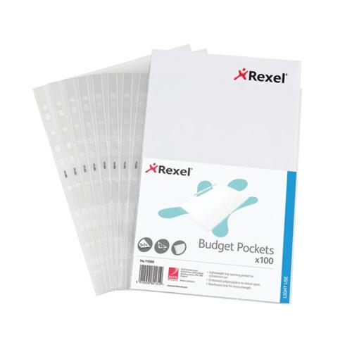 Rexel Essential Multi Punched Pocket Polypropylene A4 43 Micron Top Opening Embossed Clear (Pack 100) 11000