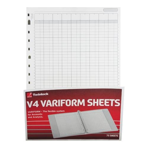 This Rexel Variform V4 Refill Pack is designed to provide a totally flexible and configurable accounting system to fit within multi-ring binders. Loose leaf for ease of use, this refill pack consists of 75 14-column sheets for complete personalisation. Perfect for small to medium businesses, the Variform range of refill packs provides the ideal solution to accounts control and analysis.