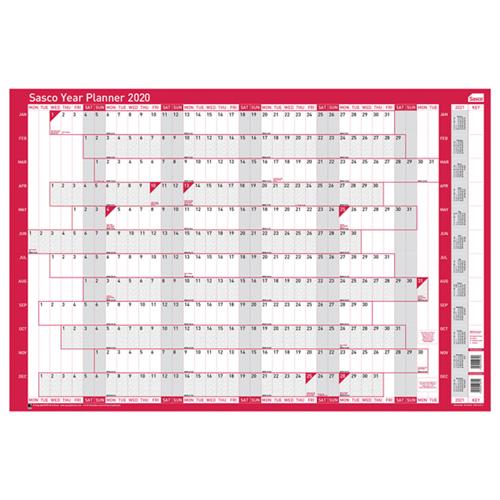 Sasco oversized year planner follows the original year planner landscape design, but with extra width to allow more room in the planning matrix for notes and reminders. A perfect addition to a busy office!