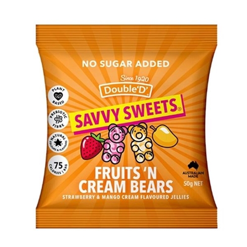 Savvy Sweets Fruits & Cream Bears 50g (12 Pack)